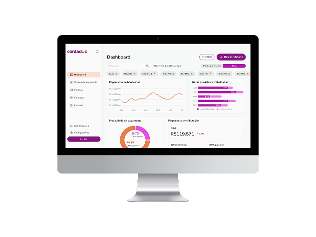 O projeto Contadoc Pagamentos foi concebido para digitalizar e organizar todo o fluxo de gestão financeira entre hospitais e médicos. A plataforma conecta dados de escalas e plantões ao ERP financeiro, aplica automaticamente regras de cálculo de impostos, pró-labore e dividendos, e gera extratos individuais para cada profissional. O resultado é um processo de pagamento mais rápido, transparente e escalável.